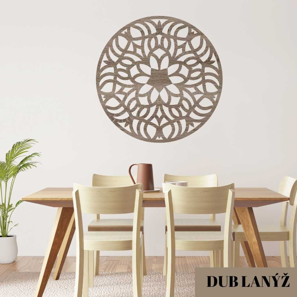 Dřevěný obraz mandala je skvělou dřevěnou dekorací, která se bude se krásně vyjímat na stěně v obývacím pokoji nebo ložnici.